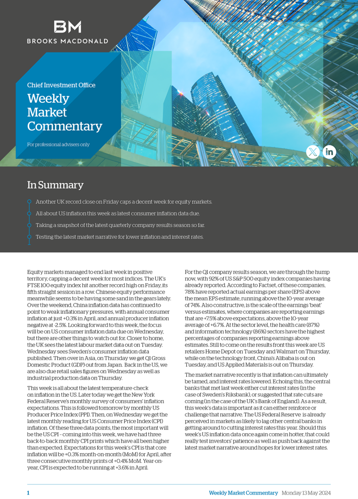 Brooks Macdonald – Weekly Market Commentary 13 May 2024