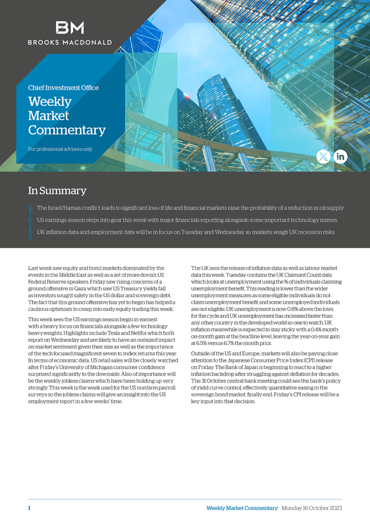 Brooks Macdonald – Weekly Market Commentary 16 October 2023